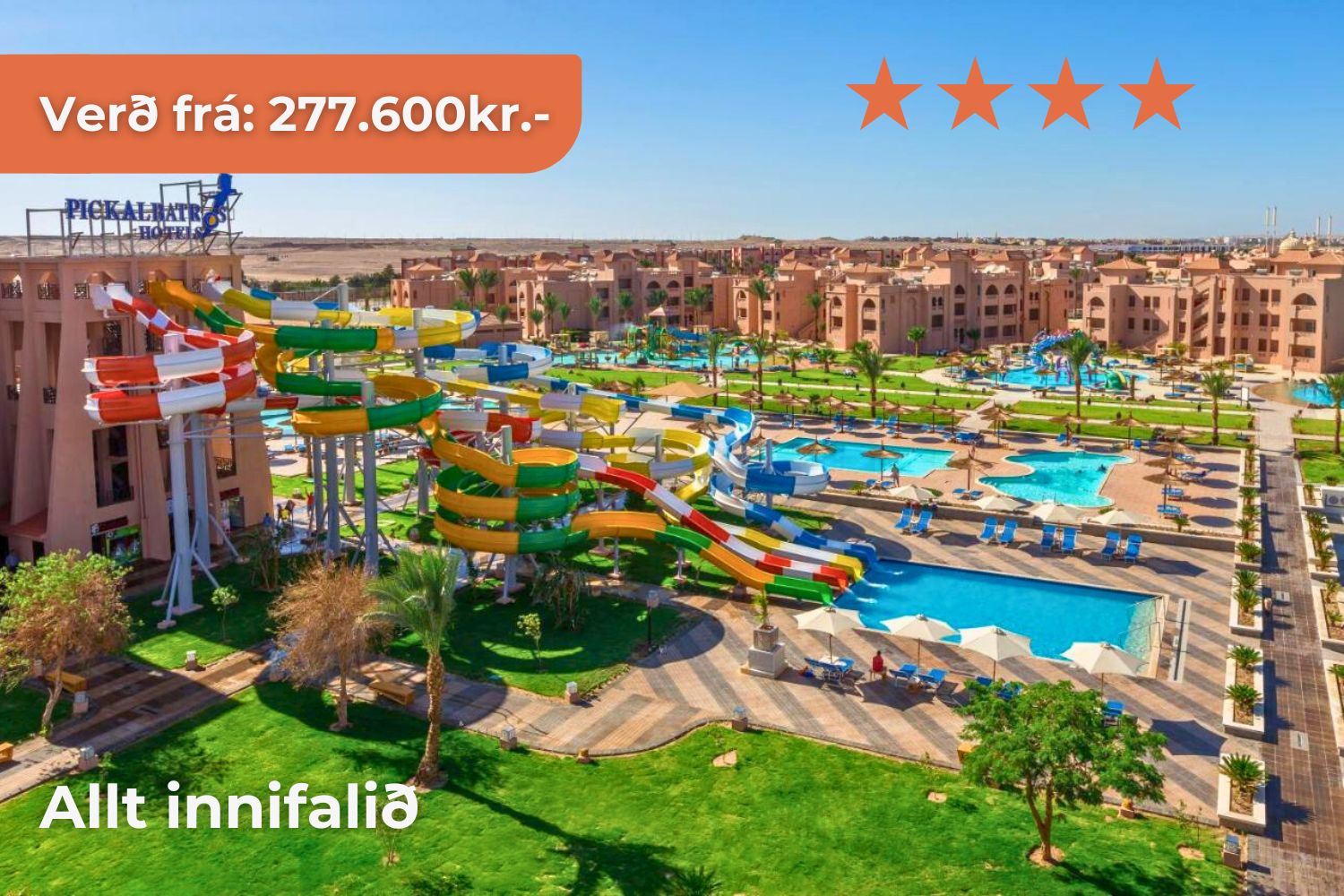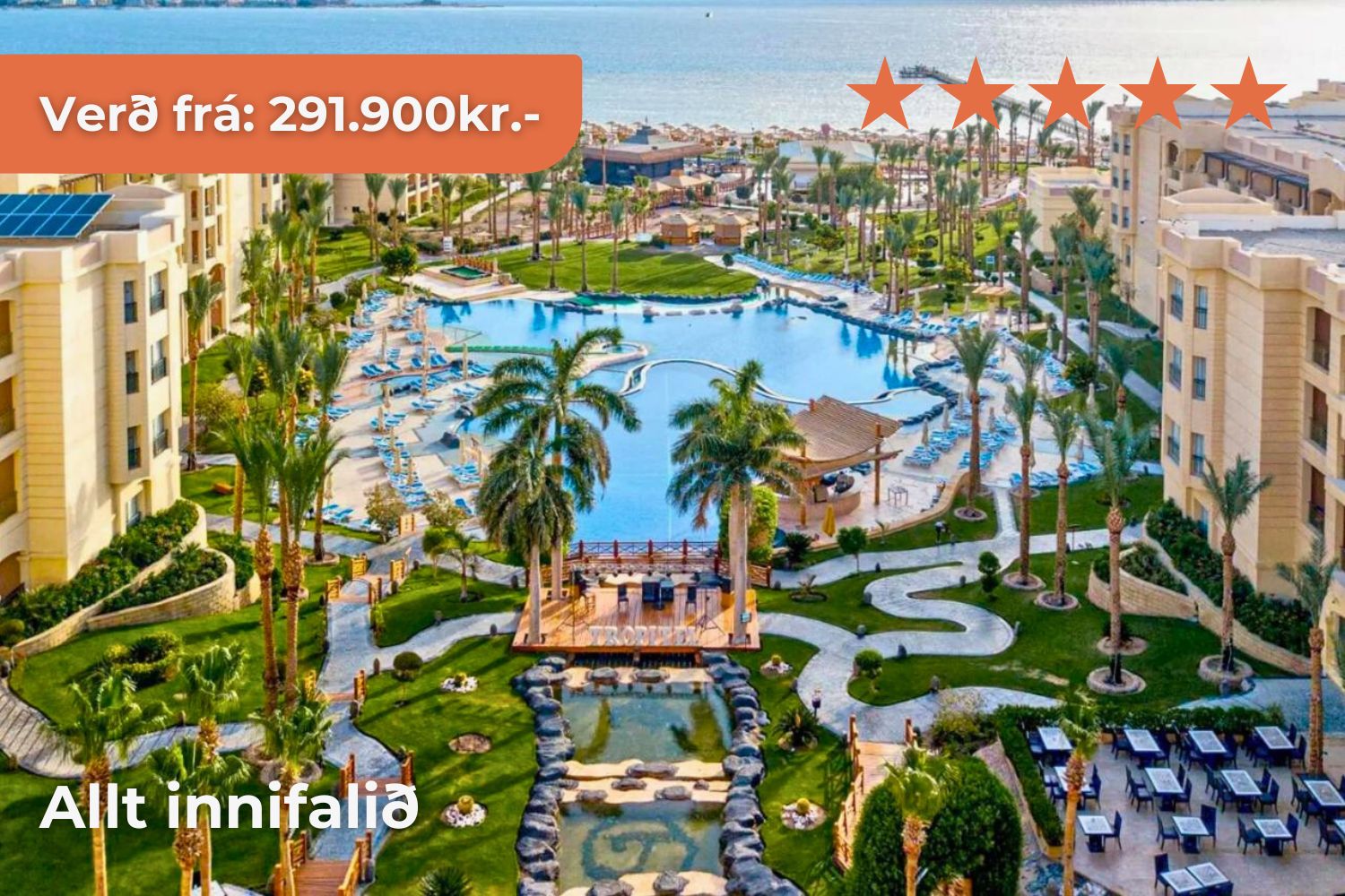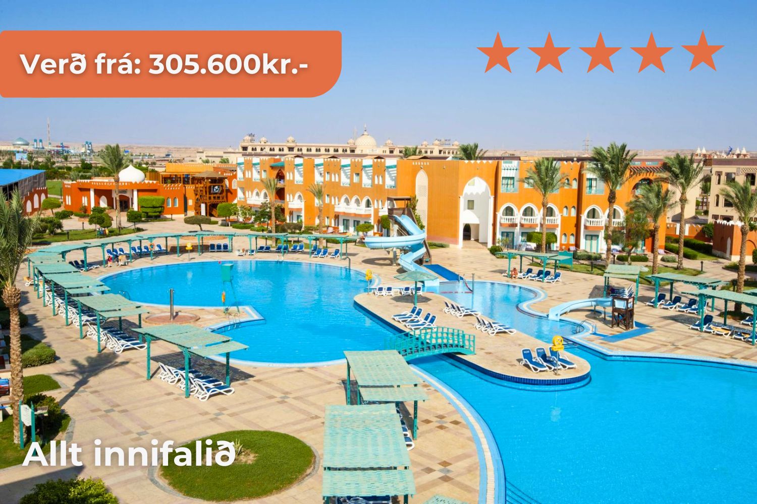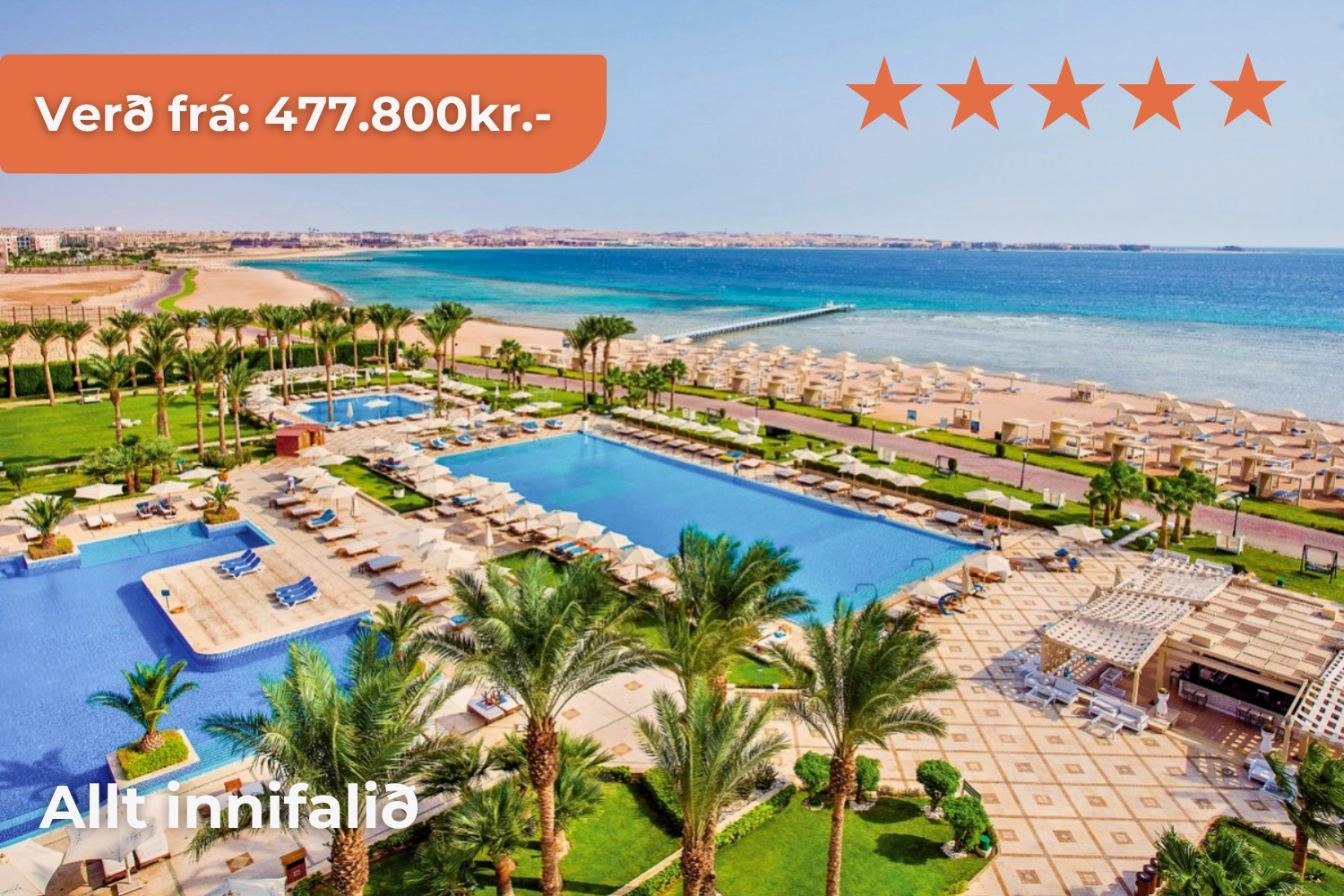 Hurghada Hin töfrandi Rauðahafsströnd teygir anga sína u.þ.b. 1.200km meðfram Egyptalandi. Við miðjan skagann liggur sólríkur og ævintýralegur áfangastaður, Hurghada! Strandbær sem er þekktur fyrir sláandi náttúrufegurð, lifandi menningu og ótæmandi afþreyingar – fullkominn áfangastaður til þess að skapa sér einstakt og ógleymanlegt jólafrí með sínum nánustu.