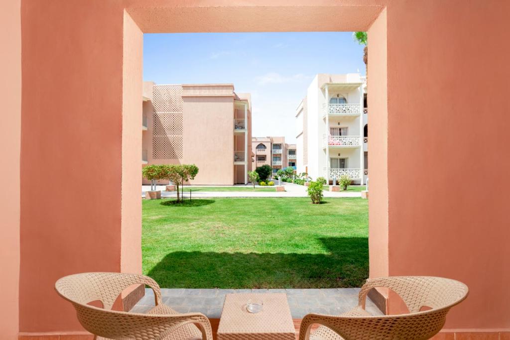 Herbergin eru rúmgóð og eru með nútímalegar innréttingar. Þau eru búin sjónvarpi og minibar. Öll herbergin eru með svölum með útsýni yfir garðinn eða sundlaugarnar.